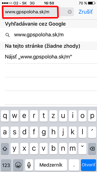 2. otvorte: www.gpspoloha.sk/m