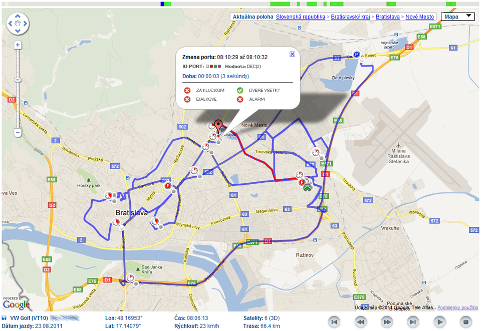 Systém ponúka online sledovanie vozidiel na niekoľkých druhoch mapových podkladov hlavne licencované Google Maps a voľné Openstreet Maps – na PC, v mobilných telefónoch a tabletoch Apple aj Android. Samozrejmosťou je kvalitne spracovaná kniha jázd vo formátoch XLS, alebo PDF. Vysoká presnosť počítadla kilometrov je známou výhodou našich zariadení. Vo verziách s napojením na CANBUS, prebieha synchronizácia počítadla kilometrov s palubným počítačom v reálnom čase. Spoľahlivý a preverený systém s rýchlou návratnosťou!